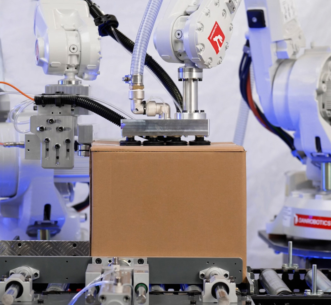 Der Prozess des Aufschneidens von Kartons funktioniert so, dass der Karton zunächst auf Maße und Verformungen gescannt wird. Dies geschieht mithilfe von Bildverarbeitungstechnologie. Weist der Karton Verformungen oder Beschädigungen auf, die die im Qualitätsmanagementsystem festgelegten Grenzwerte überschreiten, wird er zur Prüfung aussortiert, damit defekte Kartons nicht in das Lagersystem gelangen. Wird der Karton freigegeben, werden die Maße des Kartons in das System eingelesen, und der Roboter schneidet den Karton anschließend je nach gewünschtem Prozess ganz oder teilweise auf.